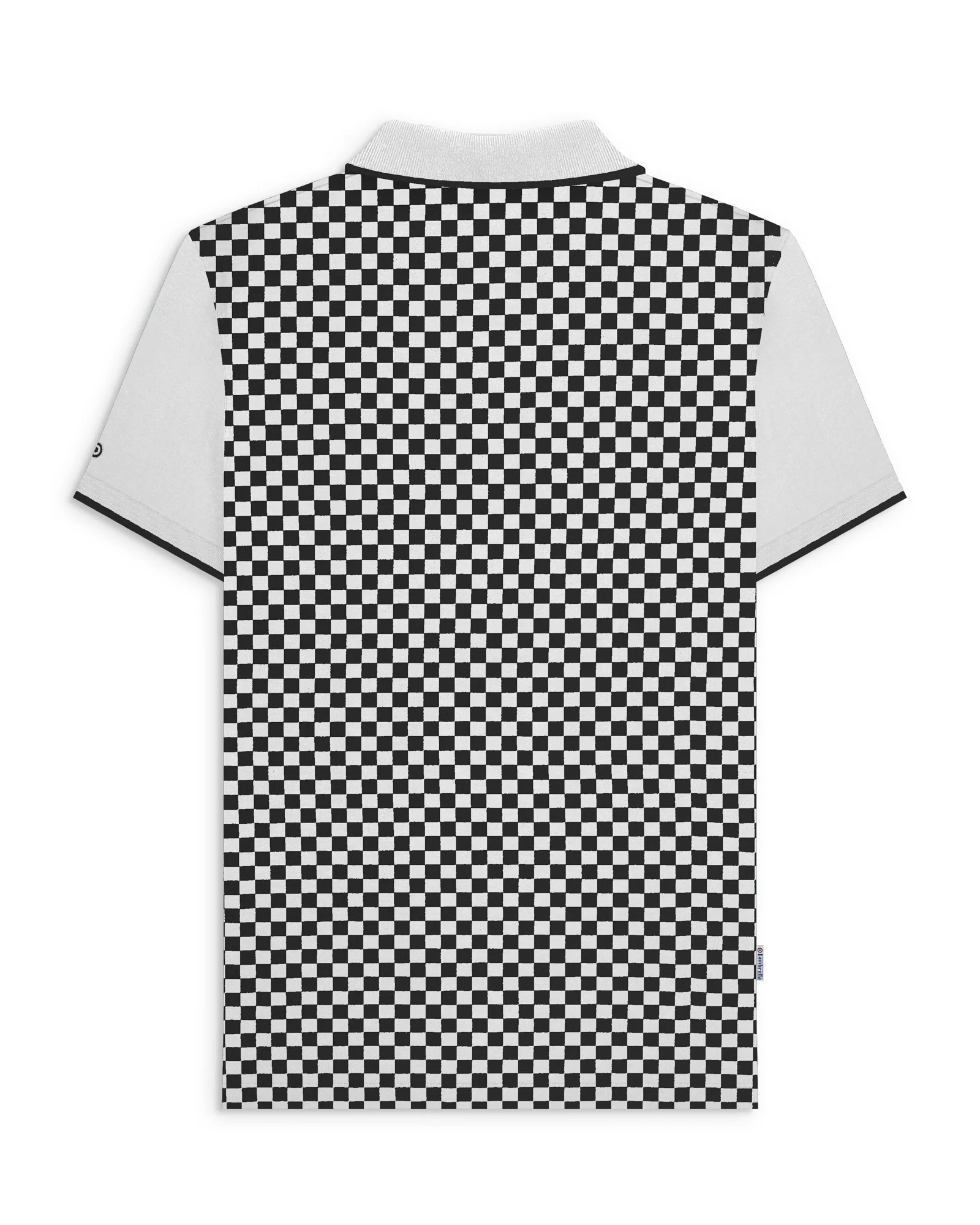Introducing a 100% cotton, two-tone print polo featuring modern chest branding and subtle tonal target embroidery on the sleeve. This piece is inspired by our cultural heritage.